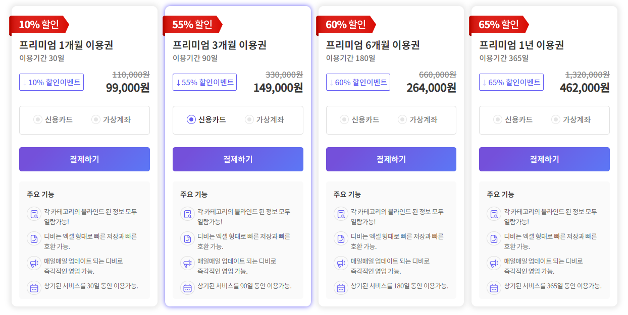 1년 이용건 결제시 비즈니스 디비 최대 65% 할인 행사