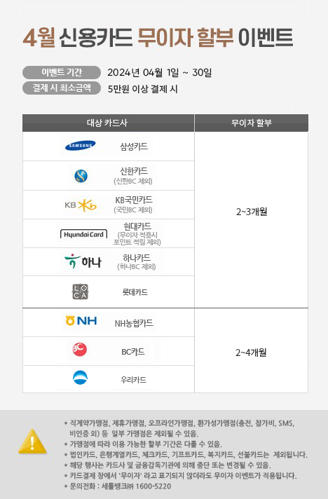 2024년 4월 카드사 무이자 할부 이벤트 안내